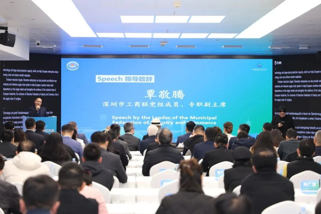 3月30日,由深圳市工商联(总商会)、德国文化经济促进会主办,龙华区委统战部(区工商联)承办的“湾区引擎 中欧机遇”深企出海服务欧洲专场活动举行。来自中德两国政商代表、行业协会领袖及深圳科技企业负责人等80余人齐聚一堂,共同探讨欧洲投资新机遇。市工商联党组成员、专职副主席(市总商会副会长)覃敬腾,龙华区委常委、统战部部长詹惠军出席活动,我会执行会长谢小彪应邀出席并发言。