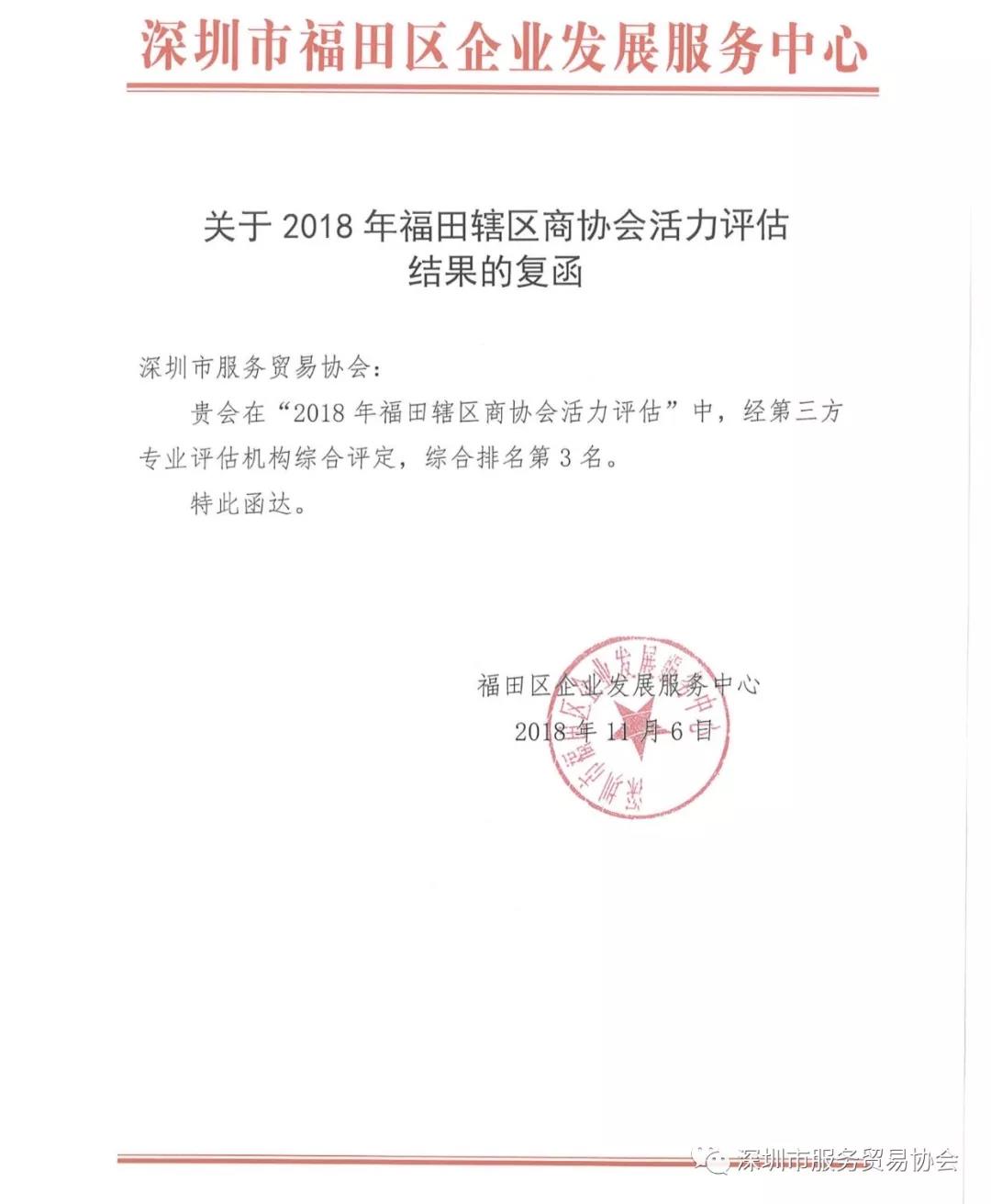 【协会新闻】我会在“2018年福田辖区商协会活力评估”中荣获第三名